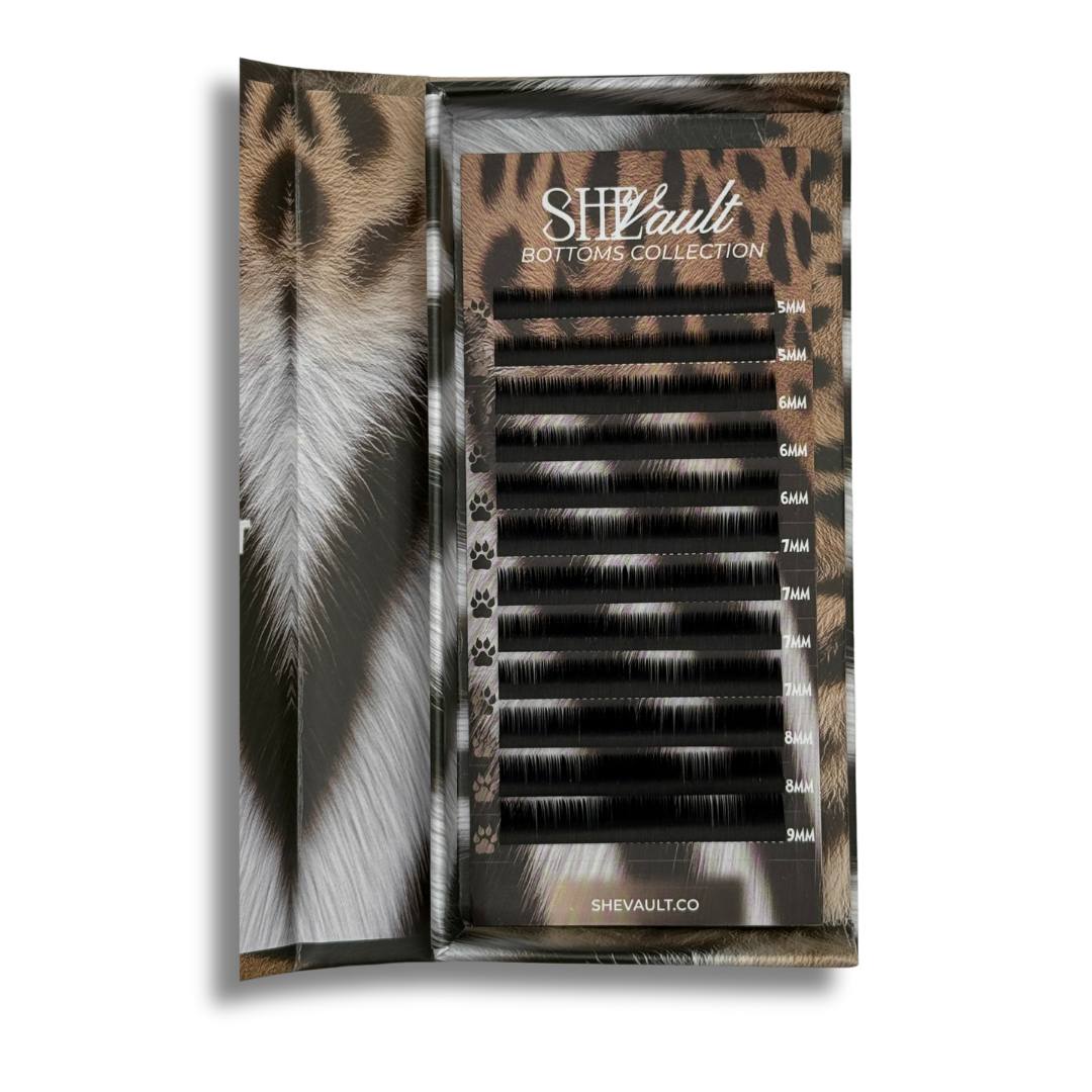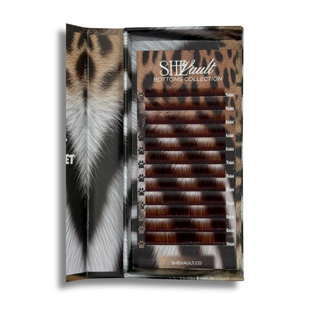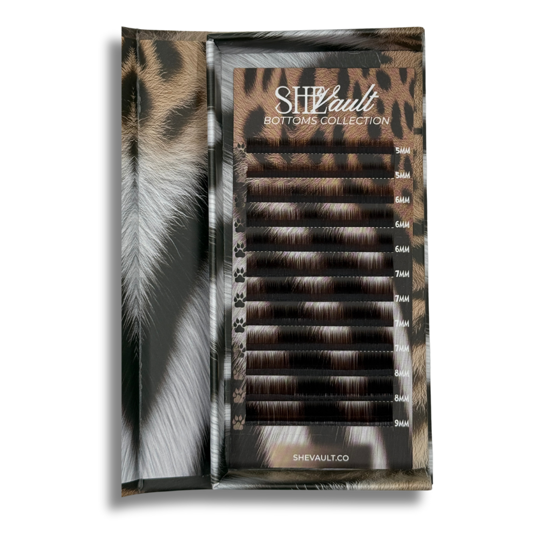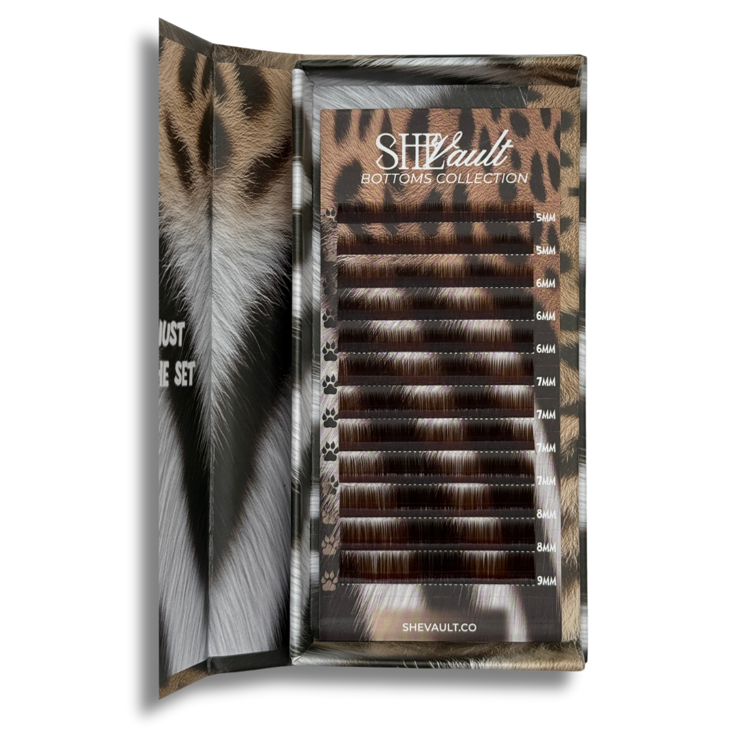 Each tray features 12 rows of premium-quality lashes ranging from 5mm to 9mm! Available in three rich brown tones—Light Brown, Caramel, and Dark Brown, all in .07 J curl. Prefer a bolder look? Our classic Black is available in both .07 and .10 J curl.